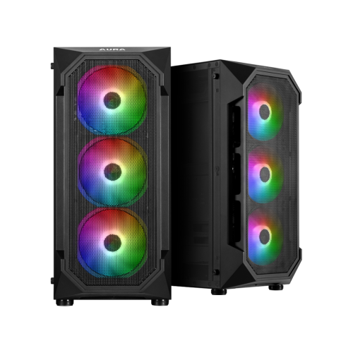 Mesh RGB Mid Tower KasaAURA GC1, şık ve kompakt bir tasarıma sahip uygun fiyatlı bir mid-tower kasadır. Engelsiz hava akışı için koyu renkli ağ ön panel, 4 dahili ARGB fan ve yapınızın güzelliğini göstermek için panoramik temperli cam yan panel içerir. | |